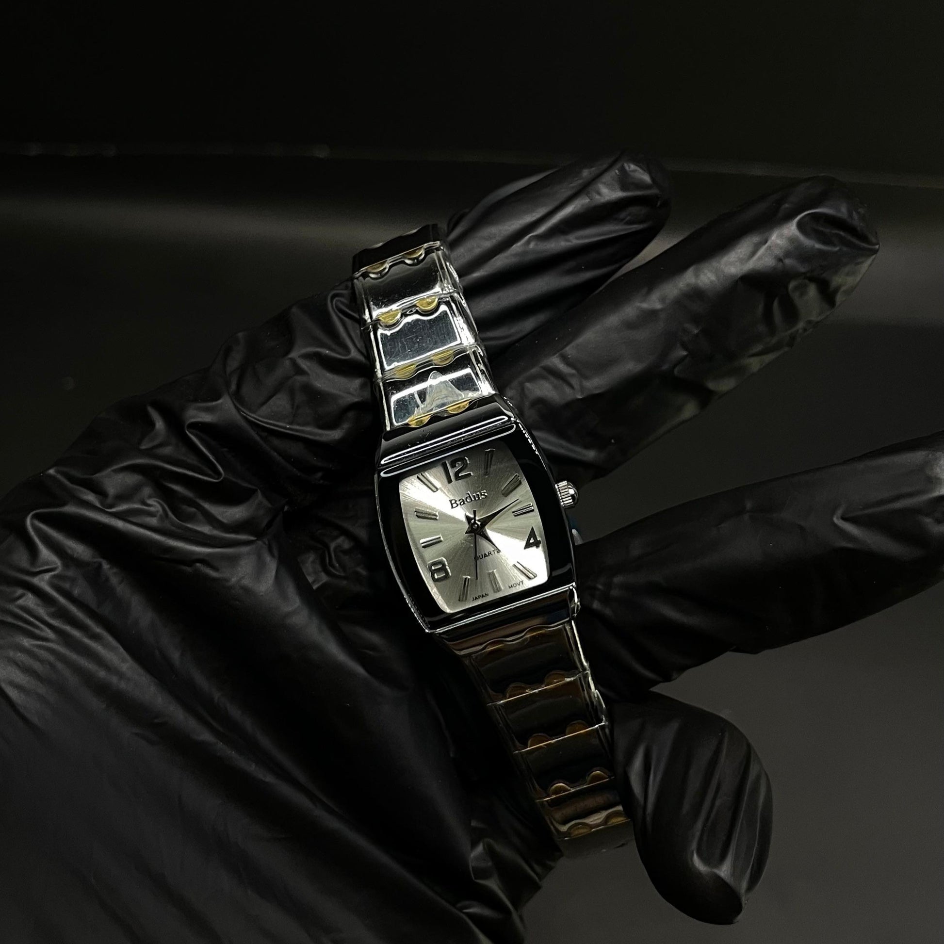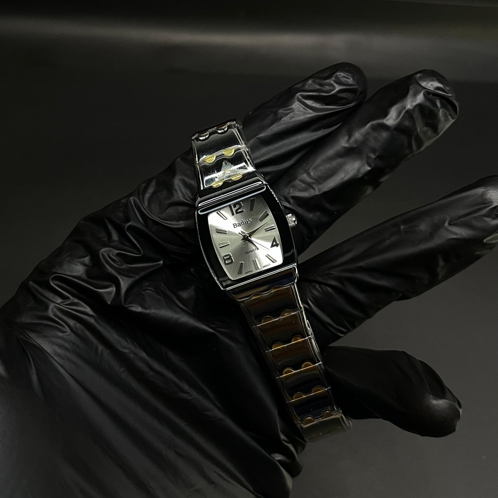 Badus ladies watch combines timeless elegance with a touch of luxury. Featuring a sleek rectangular white dial with minimalist numerals and a stylish two-tone (silver and gold) stainless steel bracelet, it’s perfect for both everyday wear and special occasions. Lightweight and comfortable.