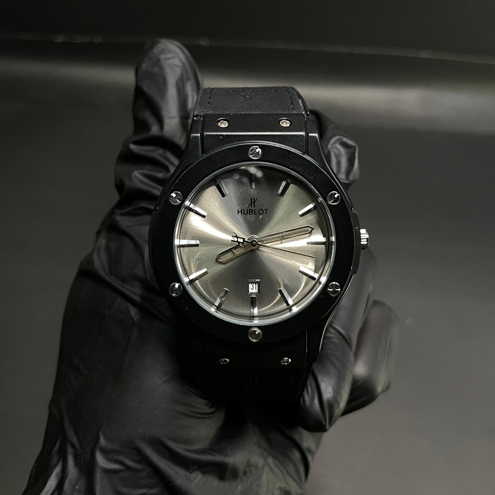 Hublot Men’s Strap Watch – Silver Dial with Black Rubber Strap