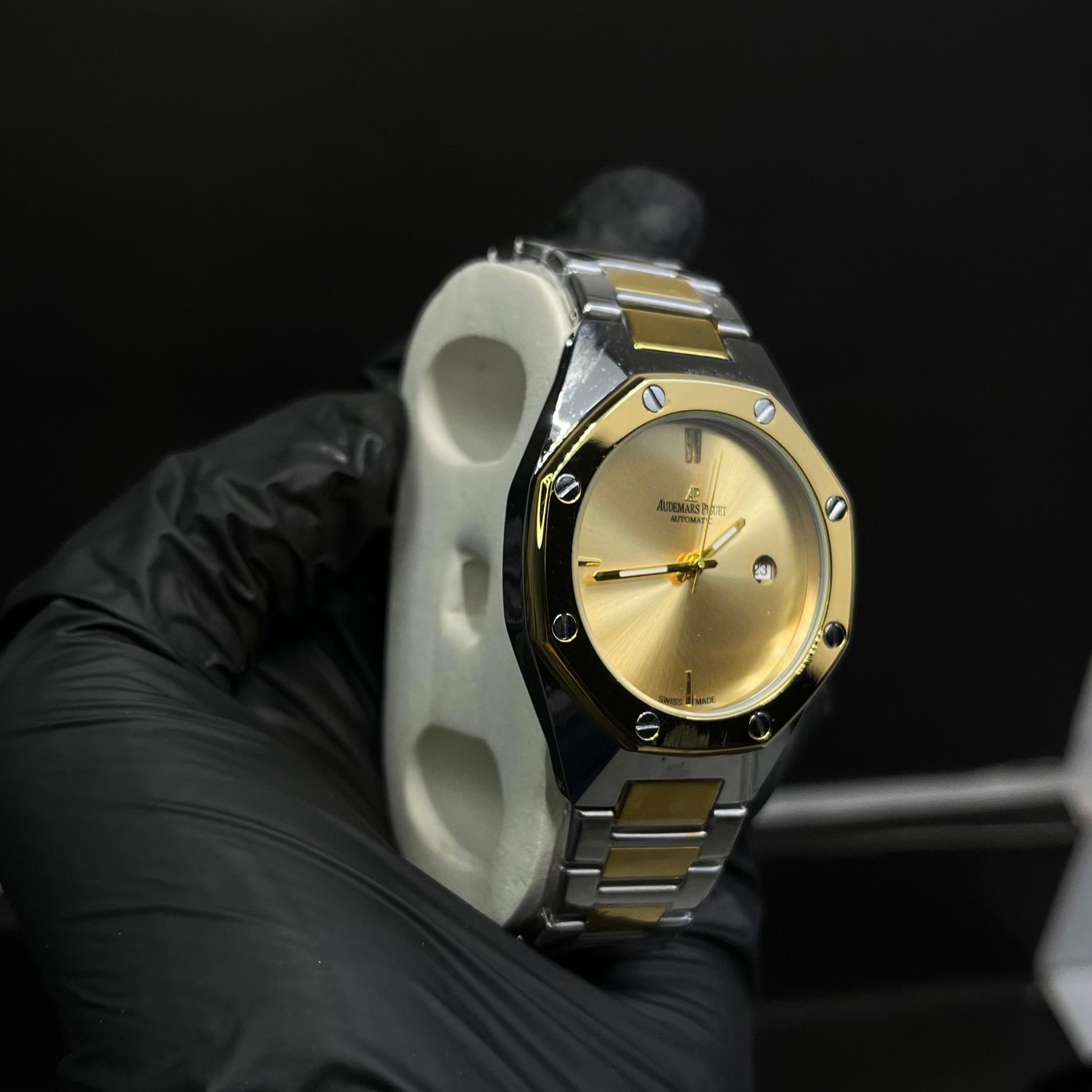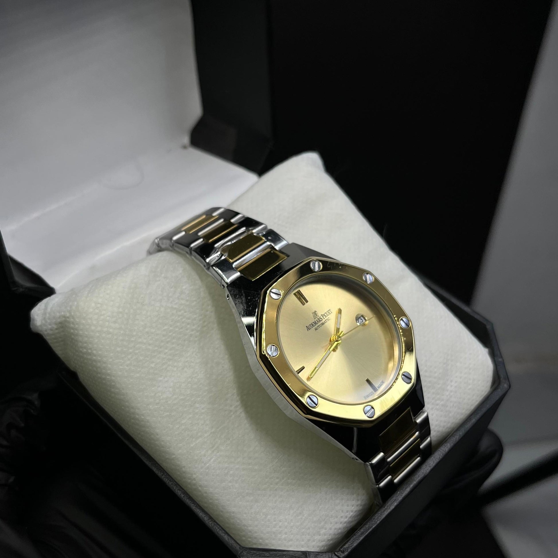 AP Luxury Stainless Steel Watch – Gold Dial with Date Display