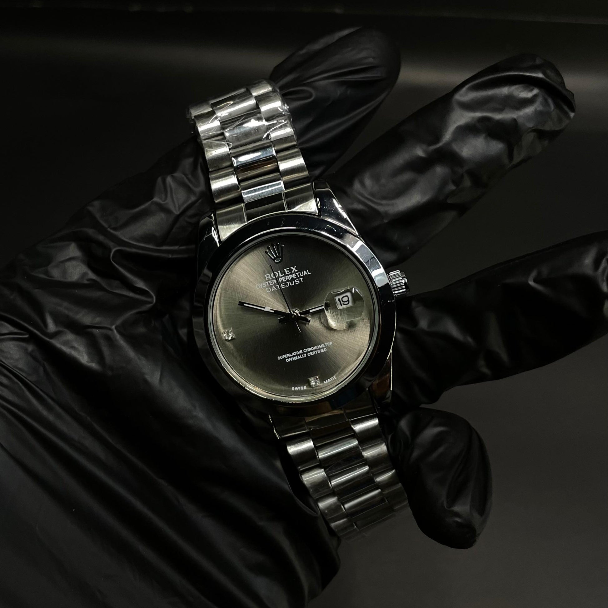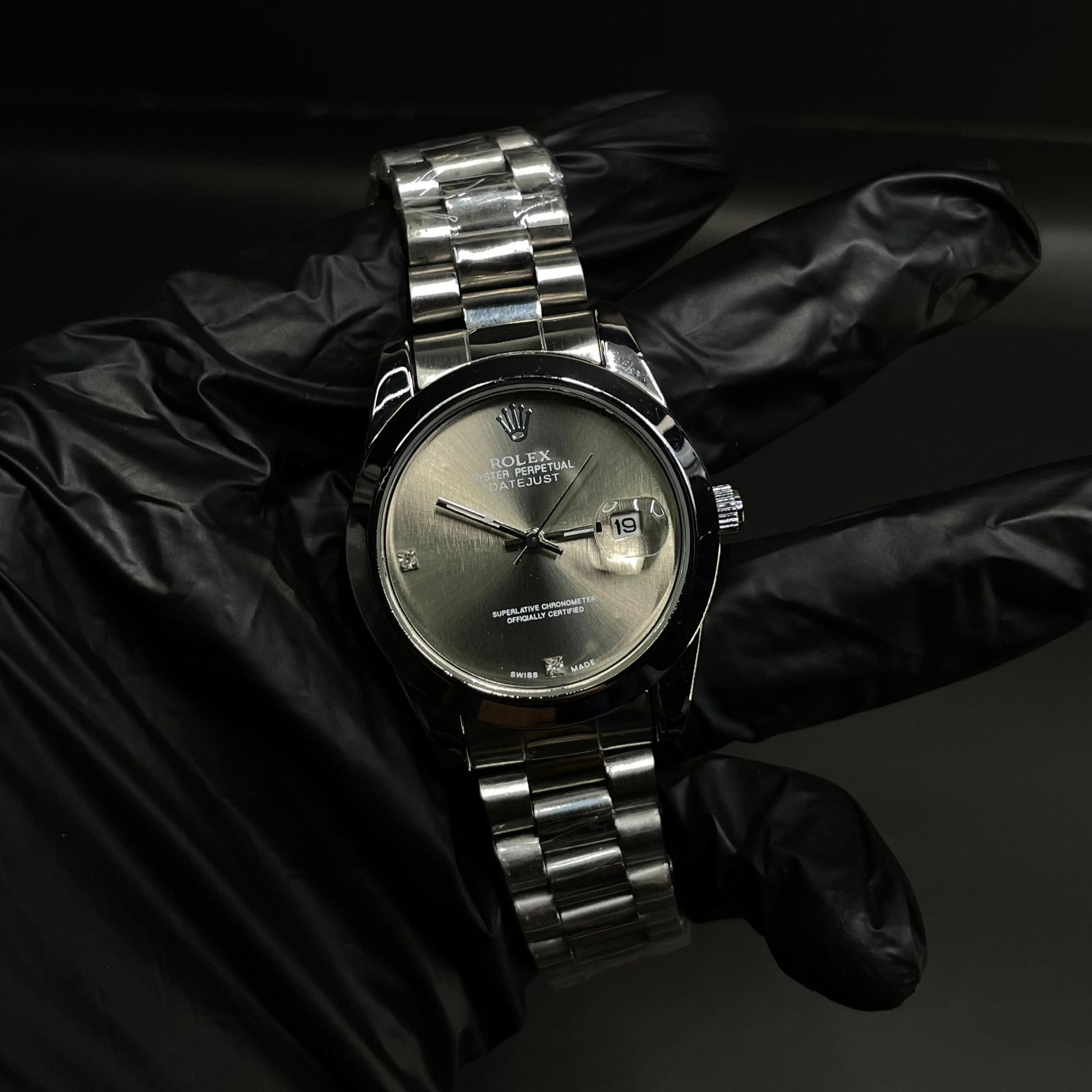 Refined, minimalist, and effortlessly elegant — this small-size women's Rolex-inspired Datejust is a timeless addition to any wardrobe. Featuring a sleek silver sunburst dial with subtle shimmer, a stainless steel bracelet, and crystal hour markers, this piece is crafted for everyday sophistication.